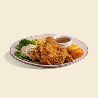 Chicken Chop (premium) in delicious coating serve with fries, vegetables, coleslaw & mantou, served with black pepper gravy