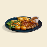 Grilled chicken with great marinated flavor, served with fries, vegetables, mantou and black pepper gravy.