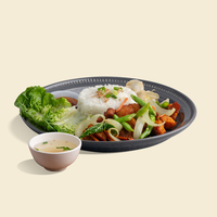 Mix grilled of chicken, lamb and meatball, served with vegetables, mantou, coleslaw, fries and topped with black papper gravy